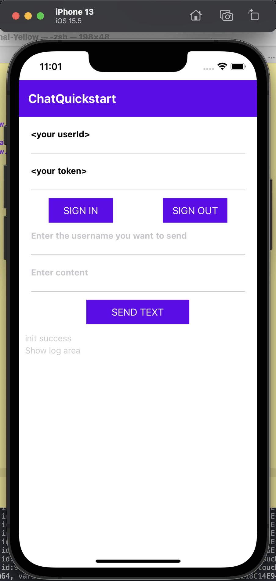 placeholder="Enter chatToken"