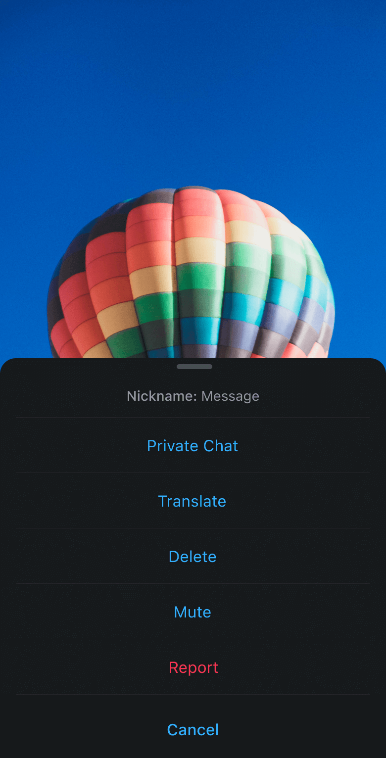 长按消息弹起 action sheet 显示消息相关操作项,操作列表顶部标题栏显示所操作消息的详情。