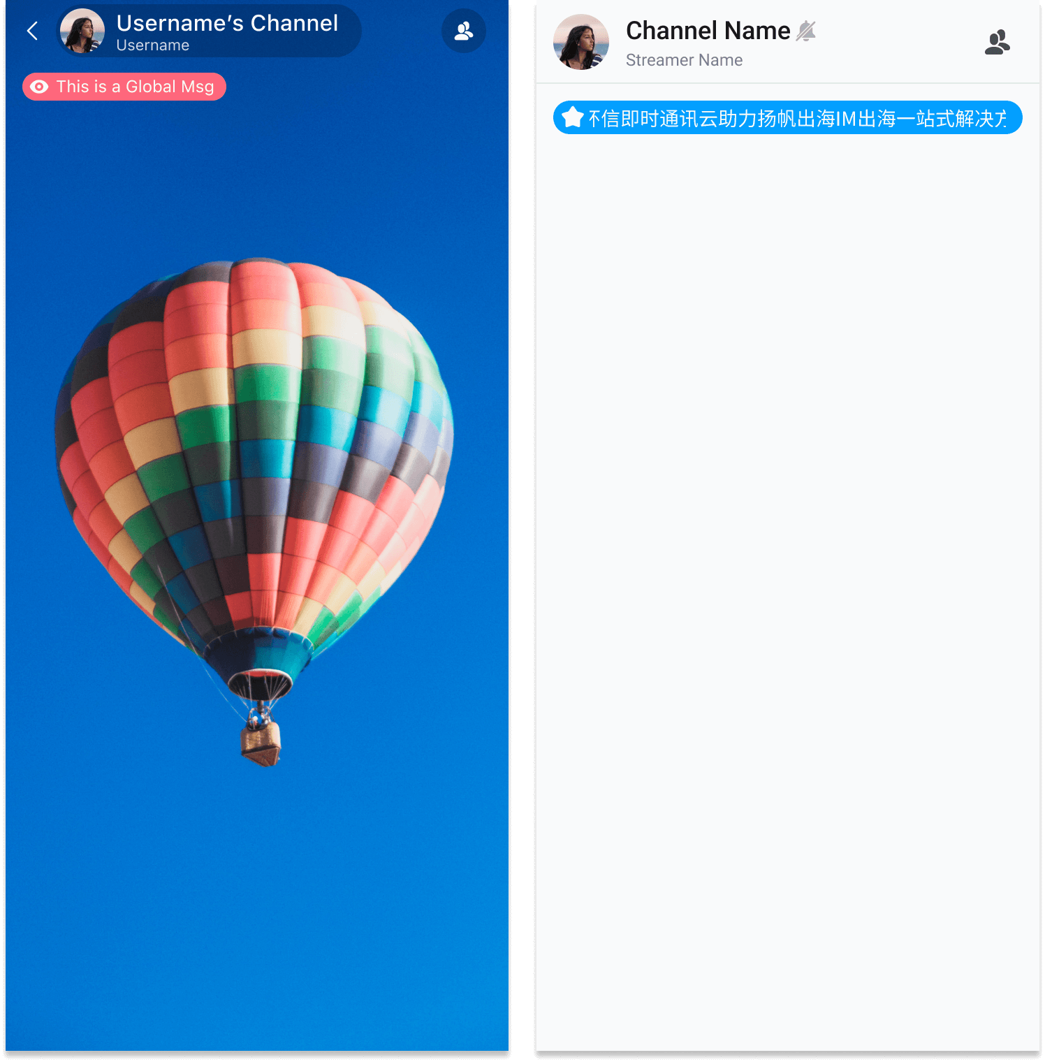 为消息按照时间顺序组合后浮动在直播流上的组件样式,依据国内外用户习惯不同,分为两类样式