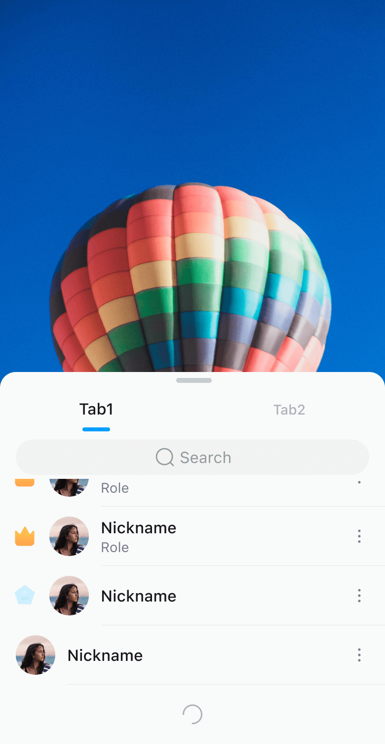 成员列表顶部支持成员类别筛选,可通过点击 tab 或者左右滑动整个列表切换,至少支持一个 tab, tab 超过四个时支持左右滑动