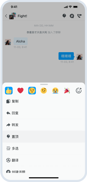 - 对消息进行复制、引用、撤回、删除、编辑、重新发送和审核。